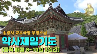 매월 음력 8일은 약사불(藥師佛)을 신앙 대상으로 삼은 약사재일(藥師齋日)이 봉행되고 있다. 약사불은 동방의 이상향인 정유리세계(淨瑠璃世界)에 나타나며, 중생을 교화하기 위하여 열두 가지 대원(大願)을 세운 부처이다. 질병과 고난으로부터 구제하고, 복락을 얻게 하는 등 현세 이익적인 경향을 띠면서 민간에서 깊은 설득력을 얻어왔다. 한국 전통사찰 중에는 별도 전각을 마련하여 약사불을 봉안하며 관련 신행 불사를 행하는 경우가 많다. 전각은 ‘약사전(藥師殿)’ 또는 ‘만월보전(滿月寶殿)’이라 명칭하며, 약사불의 존상은 주로 왼손에 약합(藥盒)을 든 모습으로 묘사된다.