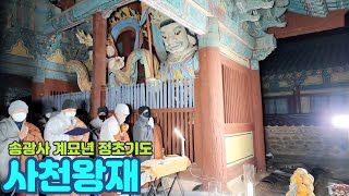사천왕재(四天王齋)는 동서남북의 네 방위를 지키는 호법신인 지국천왕(持國天王), 광목천왕(廣目天王), 증장천왕(增長天王), 다문천왕(多聞天王)을 대상으로 예를 올리며 가람의 수호를 기원하는 의식이다. 새해가 시작되면 사찰에서는 호법성중(護法聖衆)을 청하여 사부대중과 도량의 옹호를 기원하듯이 사천왕재는 주로 정초 신중기도의 일환으로 올리게 된다. 이러한 사천왕재는 사천왕상을 모신 곳에서 사부대중이 함께 모여 재를 치르기 때문에 사천왕문을 갖춘 산중사찰을 중심으로 전승되고 있다.