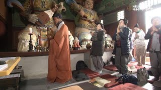 사천왕문은 본격적으로 경내에 들어서는 문으로, 사찰을 드나들 때마다 만나는 사천왕은 사찰을 지키며 삿된 기운을 물리치는 든든한 외호자이다. 특히 사악한 무리를 향한 위협적인 표정과 몸짓을 지녀 새해의 무탈함과 평안을 비는 데 더없이 적합한 존재인 셈이다.