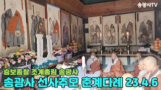 조계총림 송광사는 매년 한식날과 중양절에 선사들의 업적을 기리는 다례재를 봉행하고 있다.경내 풍암영각(楓岩世察)(국보 제56호)에서 봉행하는데, 방장스님과 주지스님을 비롯 대중스님들이 모여 고승대덕 선사들의 영단(靈壇)에 감로차를 올리고 덕화를 기린다. 풍암영각은 풍암 세찰(楓岩世察, 1688-1767) 선사와 그 법손들의 진영을 모신 전각으로, 송광사는 이 법손들이 송광사를 지키며 번창시켰던 것을 기리기 위해 매년 춘추다례를 올리고 있다.