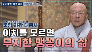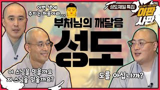 부처님께서 깨달은 첫 번째는 선정·고행주의라는 양극단의 태도를 버리고, 존재의 실상을 있는 그대로 보는 중도(中道)이다. 중도를 쉬운 말로 옮기면 ‘있는 그대로의 길’이다. 중도를 깨달은 붓다가 계속 사유하자, 두 번째 깨달음인 연기(緣起)·무아(無我)의 앎이 생겨났다. 이 세상의 모든 사물과 현상은 무상하며, 이 세상의 어떤 것도 분리·독립된 것은 없다는 깨달음이었다.[2]자현(2014), 「성도재일」, 『절에 가는 날』, 대한불교조계종 포교원 포교연구실 편, 서울: 조계종출판사, 146-150쪽. 도법스님(2017. 4. 3.), 「[붓다로 살자] ⑤ 붓다의 불교에서 본 깨달음」, 『불교신문』. https://www.ibulgyo.com