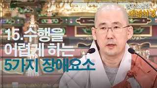 오정심관(五停心觀)은 자신의 삶을 지배하는 여러 가지 요인 중에서 부정적인 감정과 번뇌, 잘못된 견해를 멈추게 하기 위한 다섯 가지 관찰 수행법을 말한다. 탐욕의 마음이 강한 사람은 부정관(不淨觀)을, 화내는 마음이 많은 사람은 자비관(慈悲觀)을, 지혜가 부족하여 둔하고 어리석은 사람은 인연관(因緣觀)을, ‘나’라고 하는 생각이 강한 사람은 계분별관(界分別觀)을, 마음이 흩어져서 어지럽고 주의력이 부족한 사람은 수식관(數息觀)을 닦는다.