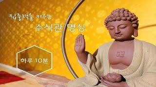 수식관(數息觀)과 수식관(隨息觀)은 혼용하여 사용하기도 하는데 수식관(數息觀)은 호흡에 집중하여 그것을 헤아린다는 뜻으로, 좌선하는 동안 자신의 들숨·날숨을 세는 것을 말하며 그 방법에는 3가지가 있다. 첫 번째는 숨을 깊이 들이쉬면서 〈하...〉, 숨을 깊이 내쉬면서 〈나...〉라고 하는 것이다. 이와 같은 방법으로 호흡을 하나에서 열까지 세도록 한다. 두 번째 방법으로는 마시는 숨을 세지 않고 내쉬는 숨만 세는 방법이 있으며, 세 번째로는 마시는 숨만 세는 방법이다. 수식관은 다섯 종류의 번뇌 작용을 멈추기 위한 오정심관(五停心觀) 중 하나로 산만한 마음을 한 곳으로 모아 집중력을 높일 수 있다. 호흡을 세는 것이 익숙해져서 오히려 거추장스럽게 느껴진다면 수를 세는 것을 멈추고 자연스럽게 호흡과 하나가 되는 수식관(隨息觀)으로 넘어갈 수 있다. 자신의 호흡에 몰입하여 호흡 그 자체가 되는 것이다. 호흡을 통한 코 끝의 감각이나 배의 움직임을 알아차림 한다.